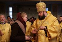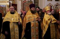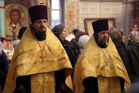 Его Преосвященству сослужили: митрофорный протоиерей Валентин Никонов, благочинный Бишкекского благочиния протоиерей Андрей Кунавин, клирики Свято-Воскресенского собора иерей Сергий Чудайкин, иерей Олег Белотуркин, иерей Вадим Паскин