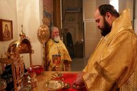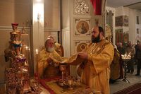 Его Преосвященству сослужил митрофорный протоиерей Валентин Никонов.
