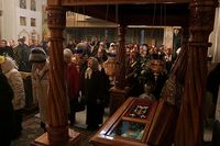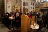 Перед святым причастием владыка Даниил обратился к прихожанам с архиерейским словом, в котором призвал собравшихся совершать особые моления за благоуспешное завершение реконструкции Свято-Воскресенского собора: «Вы знаете, что реконструкция храма сейчас находится на особом этапе – идут внутренние отделочные работы и они достаточно масштабны. Прошу ваших ежедневных молитв. Если здоровье позволяет, то делайте утром или вечером по одному земному поклону, чтобы Господь вспомоществовал нам к Рождеству войти в собор для совершения торжественной Рождественской Божественной литургии.