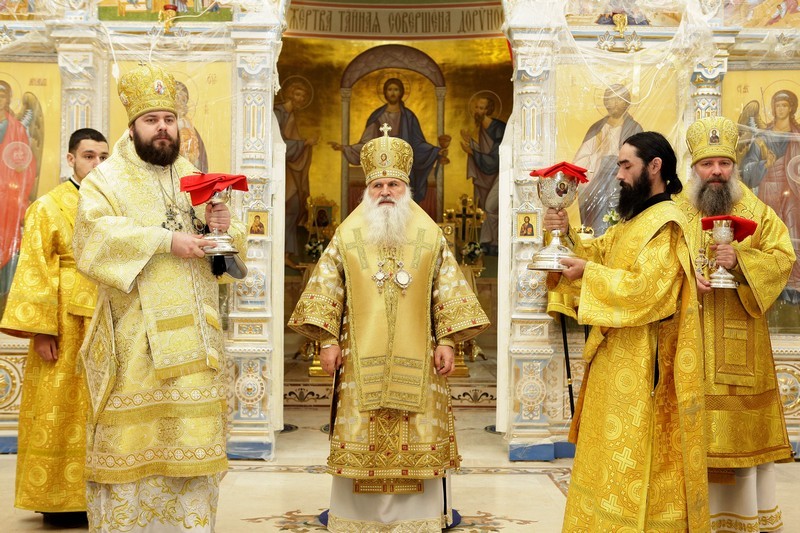 Накануне в соборе было отслужено Всенощное бдение.