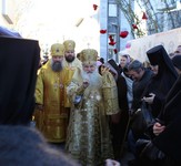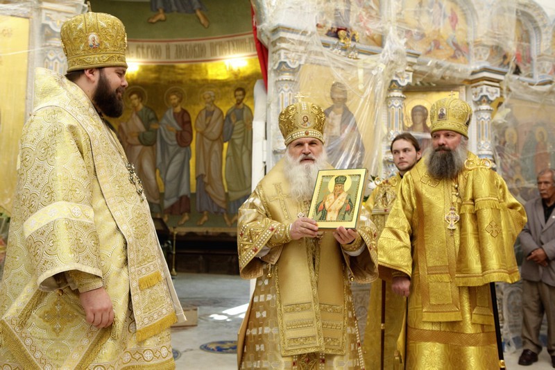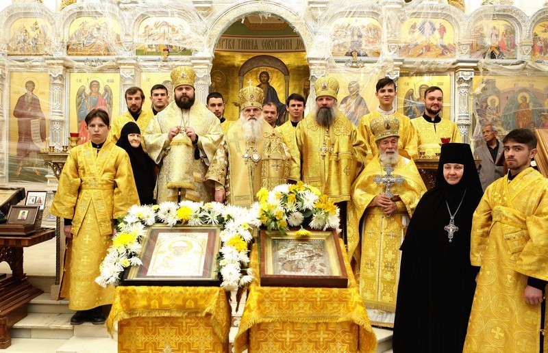 После Таинства Причастия и отпуста правящий архиерей Ташкентской епархии митрополит Викентий вознес молитву ко святителю Спиридону, а затем ему было пропето величание.
