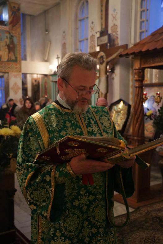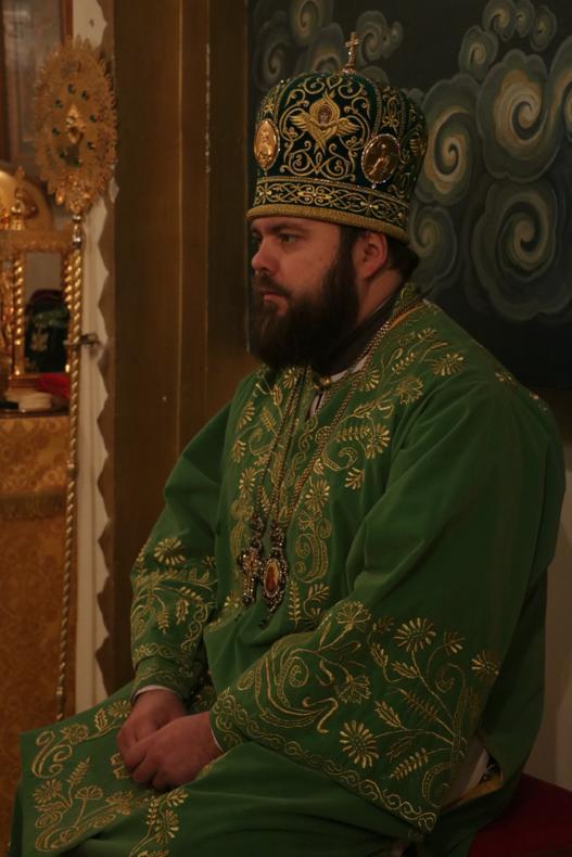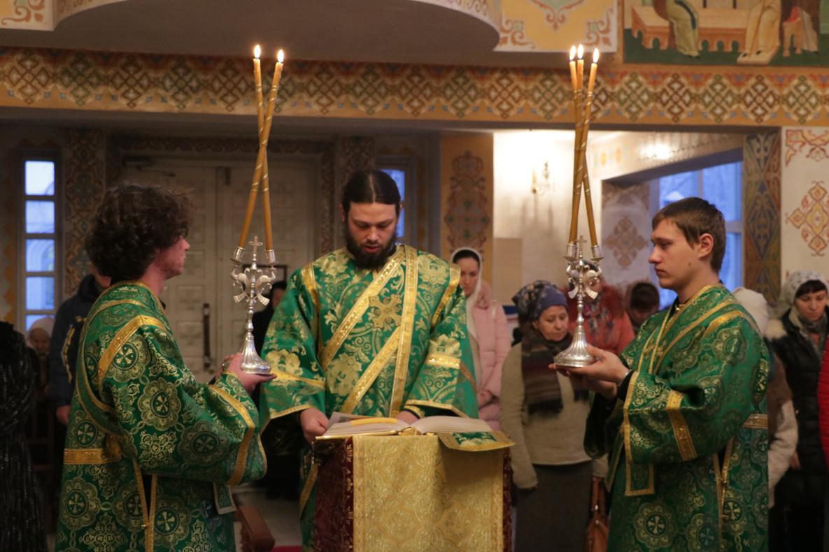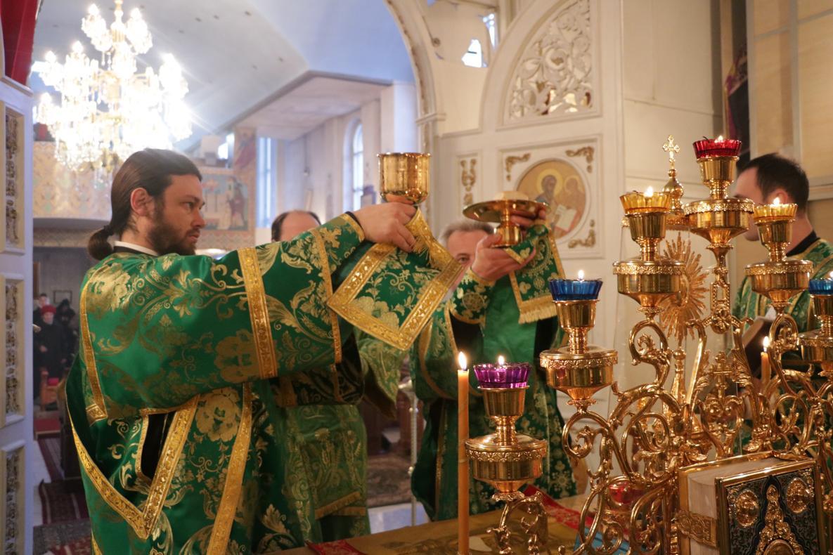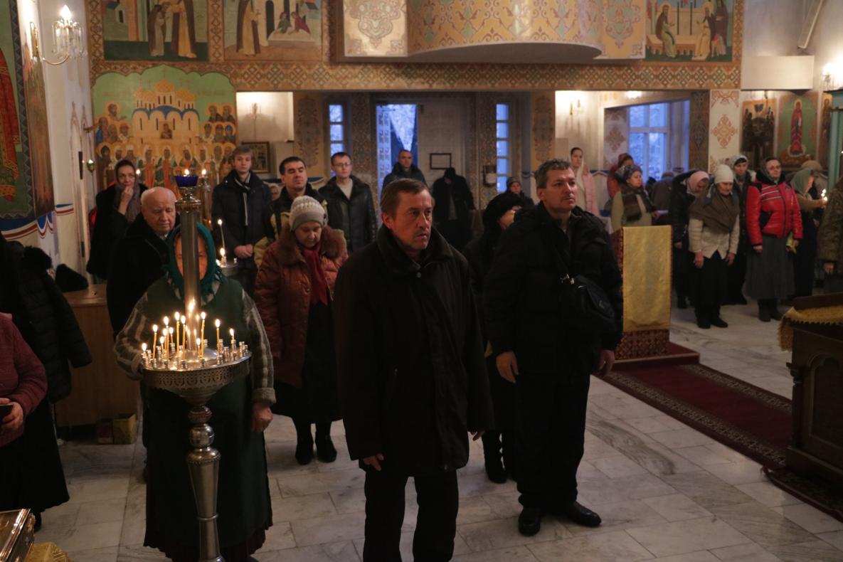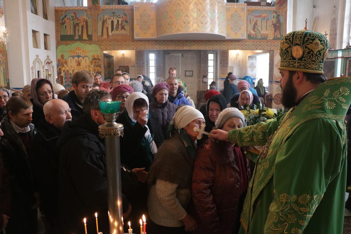 Его Преосвященству сослужили ключарь Свято-Воскресенского собора иерей Георгий Дворовой, клирик собора иерей Олег Белотуркин.
