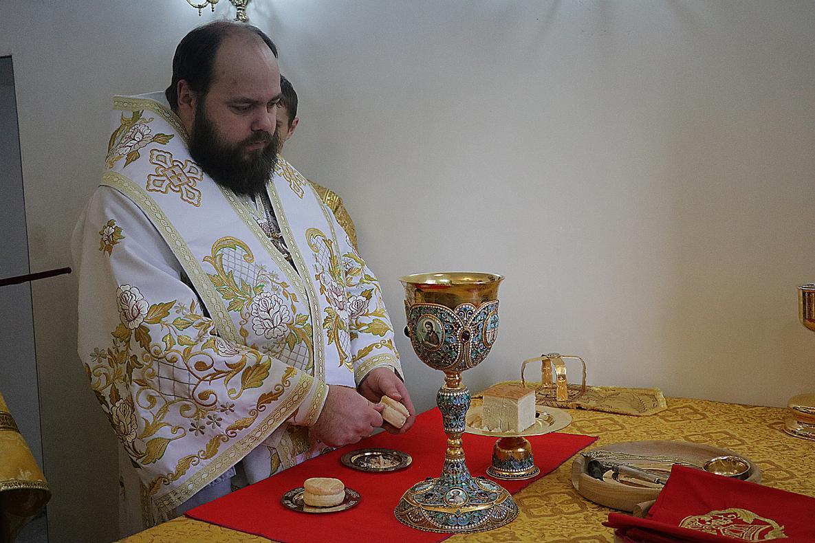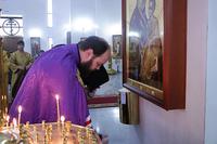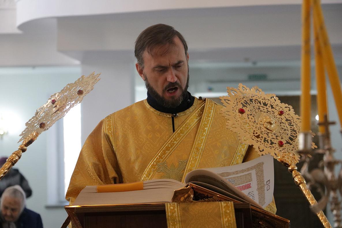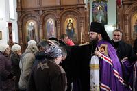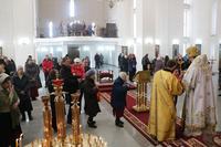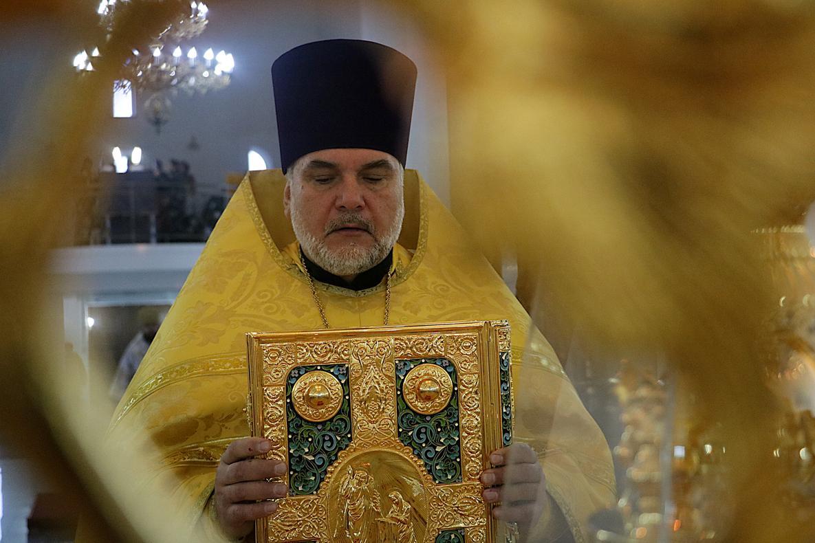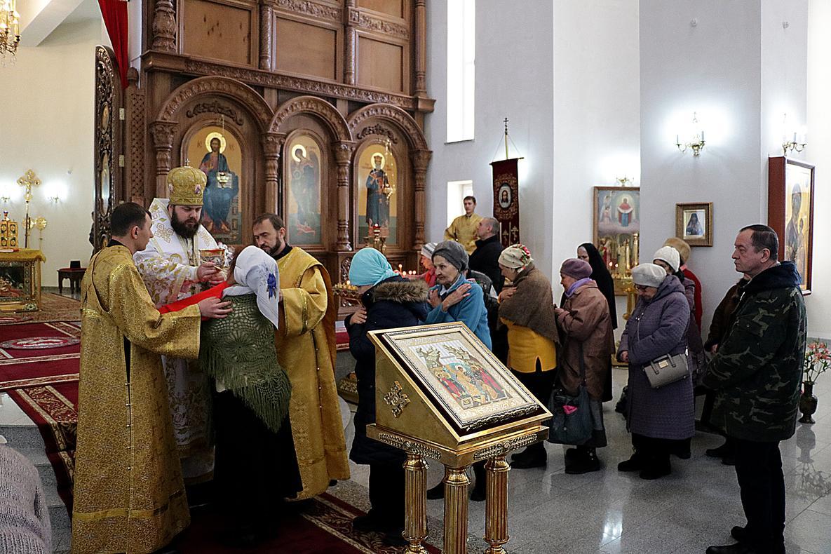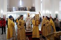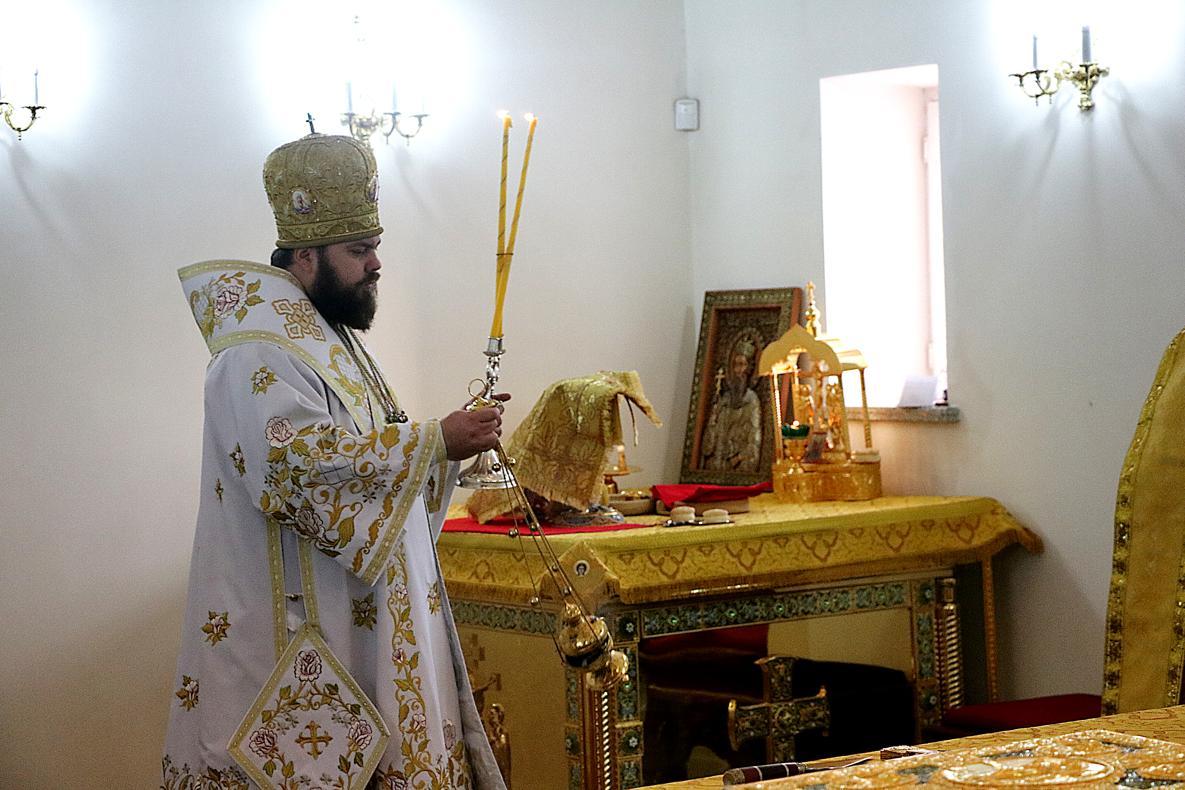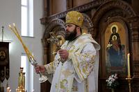 Его Преосвященству сослужили: настоятель Владимирского храма протоиерей Алексий Зайцев, ключарь Свято-Воскресенского собора иерей Георгий Дворовой.