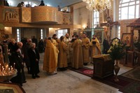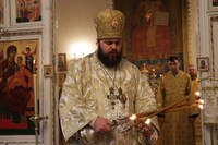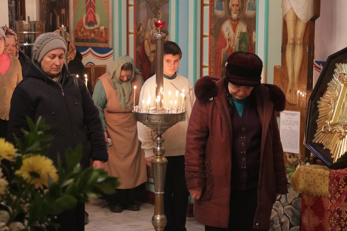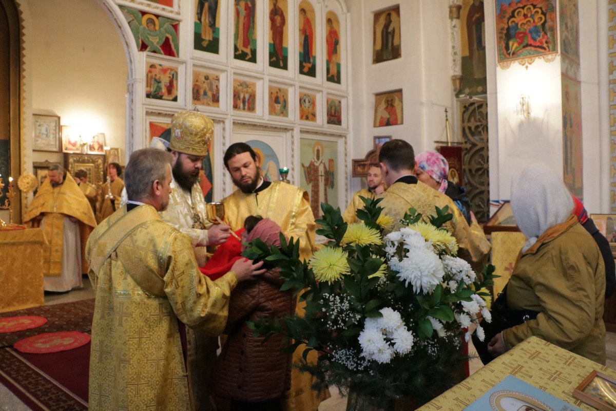 По завершении литургии владыка Даниил причастил прихожан Святых Христовых Тайн. Затем была прочитана молитва блаженному Прокопию Вятскому, Христа ради юродивому, память которого празднуется 3 января.
