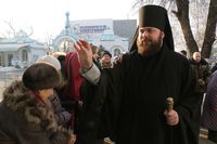 Его Преосвященству сослужили: митрофорный протоиерей Валентин Никонов, ключарь Свято-Воскресенского собора иерей Георгий Дворовой, благочинный Бишкекского округа протоиерей Андрей Кунавин, клирики собора иерей Сергий Чудайкин, иерей Олег Белотуркин, иерей Вадим Паскин.