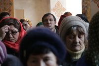 Во время богослужения епископ Даниил помазал верующих освященным елеем.
