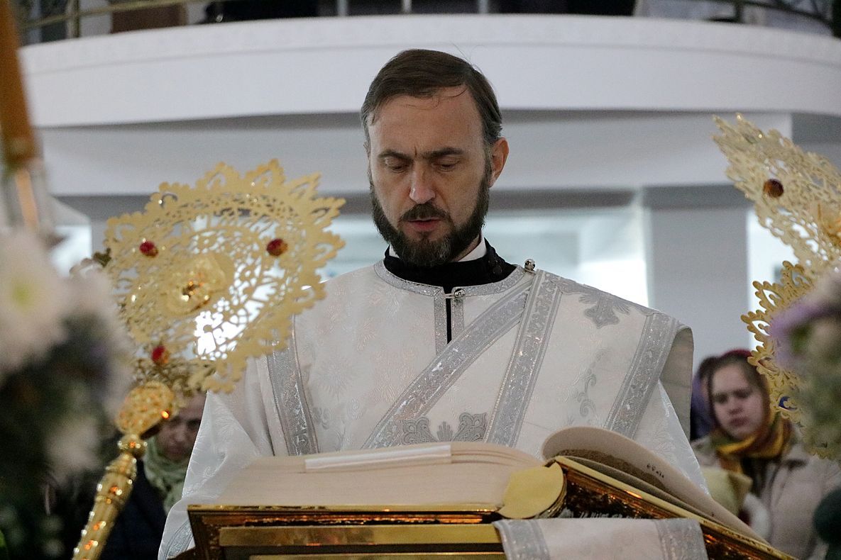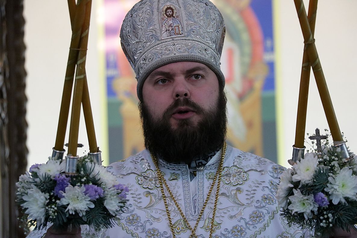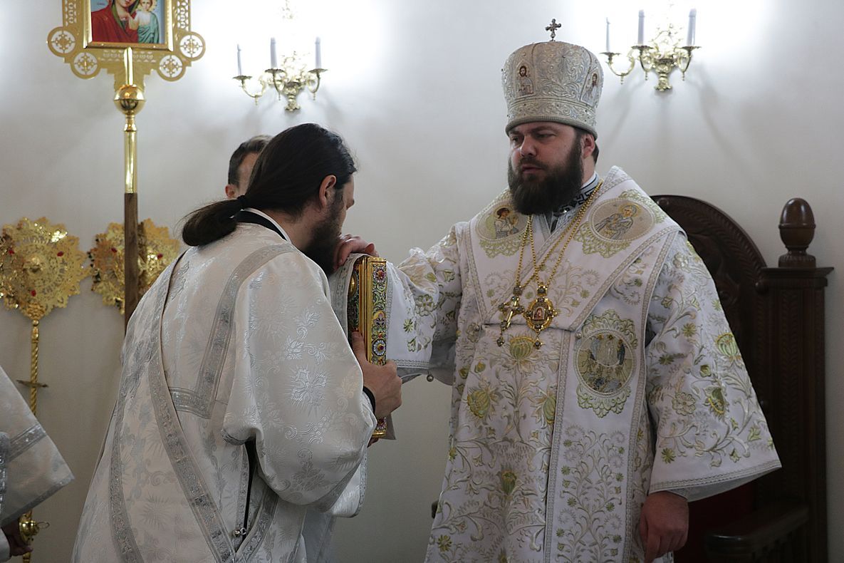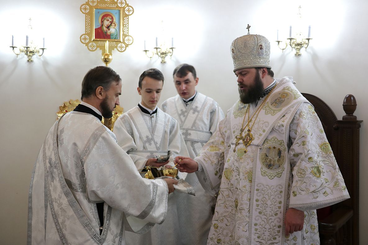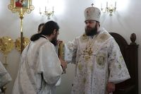 За праздничной Литургией Его Преосвященству сослужили: митрофорный протоиерей Валентин Никонов, настоятель Владимирского собора протоиерей Алексей Зайцев, ключарь Свято-Воскресенского кафедрального собора иерей Георгий Дворовой.