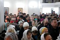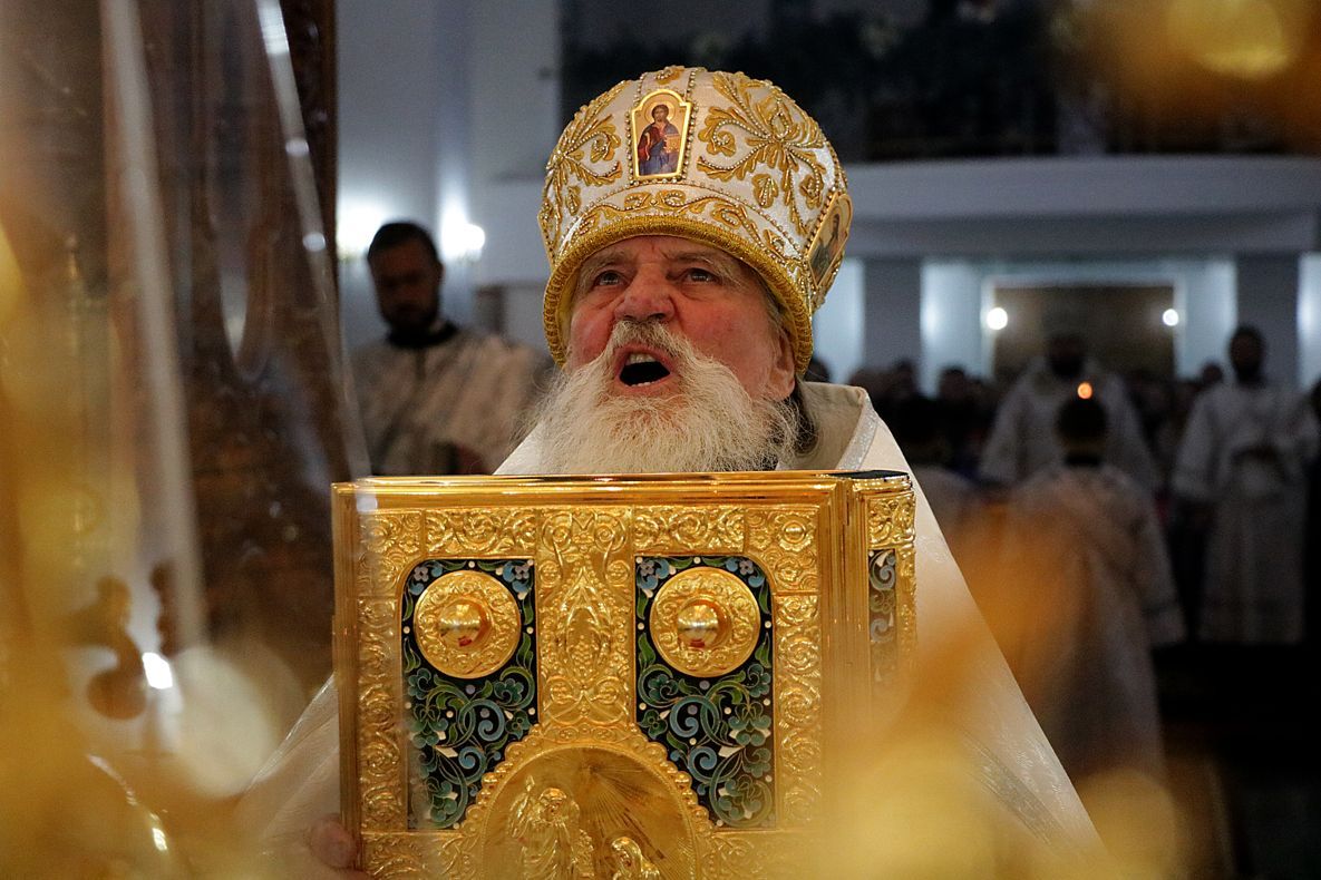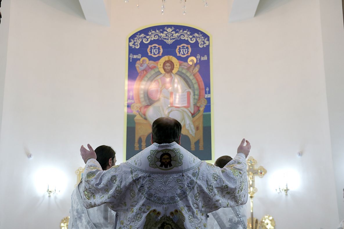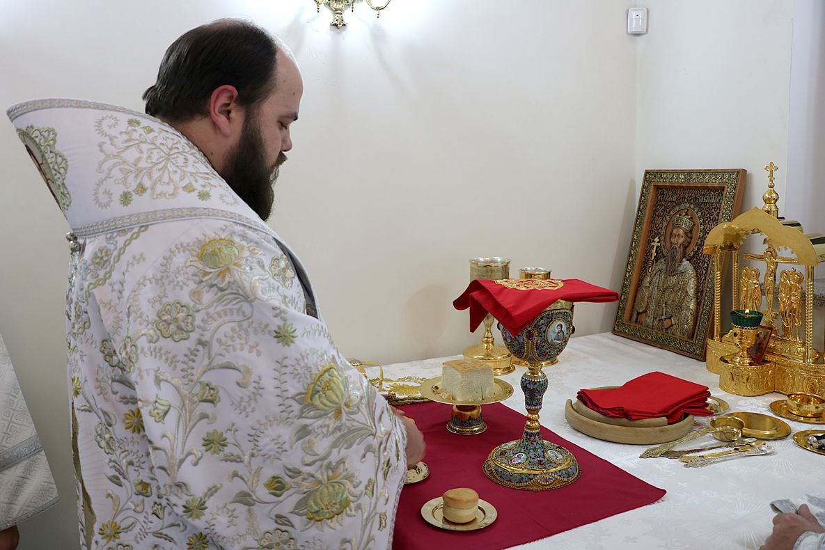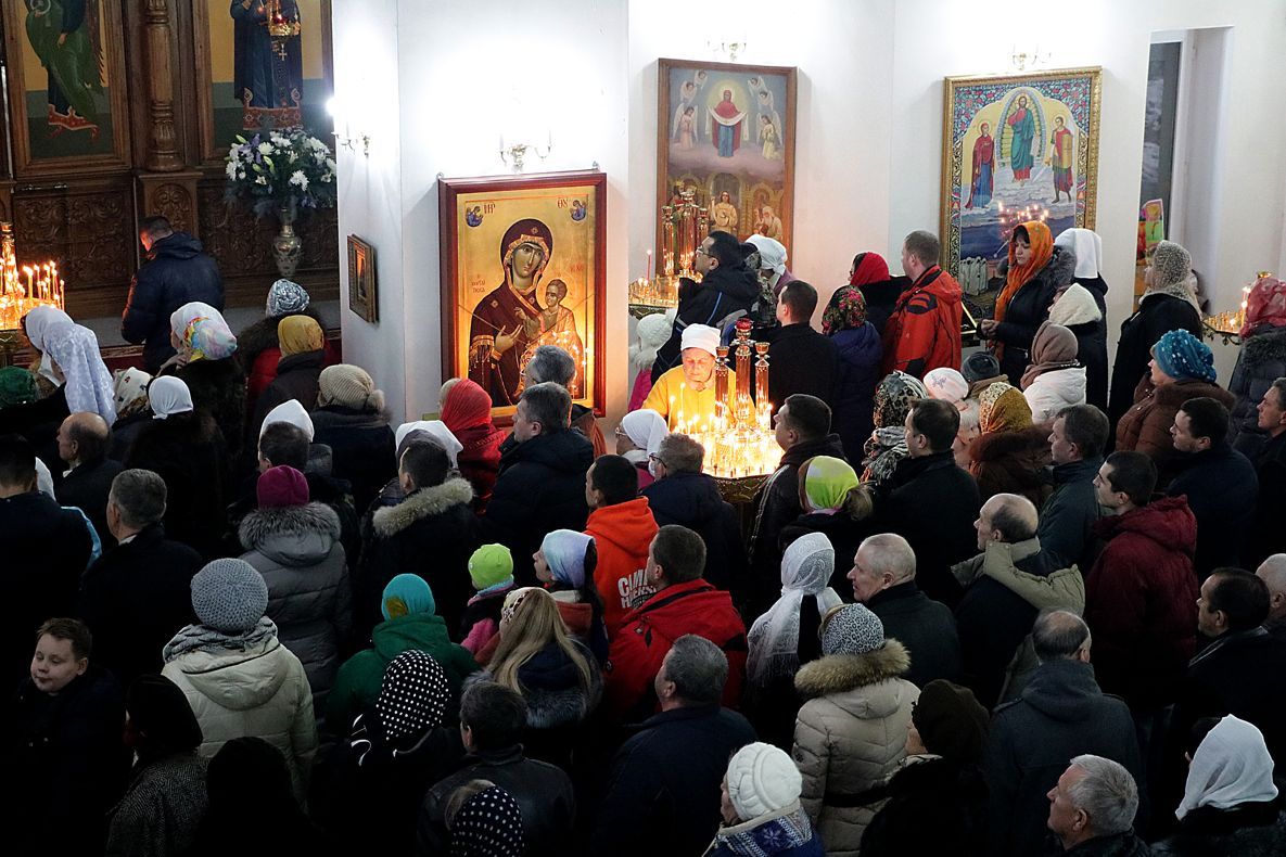 За праздничной Литургией Его Преосвященству сослужили: митрофорный протоиерей Валентин Никонов, настоятель Владимирского собора протоиерей Алексей Зайцев, ключарь Свято-Воскресенского кафедрального собора иерей Георгий Дворовой.