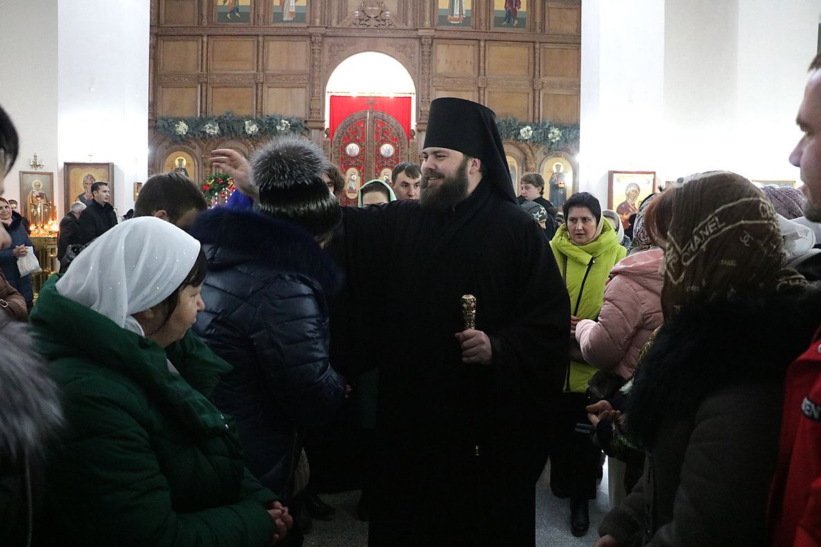 В своем слове Его Преосвященство призвал каждого христианина совершенствоваться так, как об этом сказано в Евангелии: «Будьте совершенны, как Отец ваш Небесный совершен». И самым главным принципом такого совершенствования является любовь. Господь своим Рождением явил роду человеческому великую любовь. Именно любовью Господь познается людьми: «Любовь это самое важное, все перед ней – ничто. Да будем иметь эту любовь в сердце своем, потому что Бог – это и есть любовь. Мы с вами можем быть разгорячены, можем быть гневливы, обижать или обижаться, оскорблять или оскорбляться, мы можем ненавидеть, мы можем эту ненависть преумножать, но любовь все это побеждает, только нам нужно для этой любви открыть сердце простыми словами: «Господи, пребуди с нами во веки веков, дабы в сердце нашем эта любовь пребывала, согревала нас и даровала бесконечную, неизреченную надежду в жизни вечной».