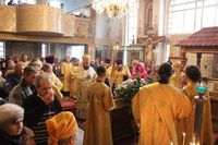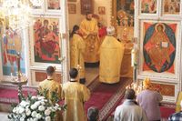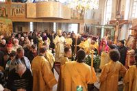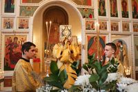Его Преосвященству сослужили: митрофорный протоиерей Валентин Никонов, ключарь Свято-Воскресенского собора иерей Георгий Дворовой, благочинный Бишкекского округа протоиерей Андрей Кунавин, клирики Свято-Воскресенского собора иерей Сергий Чудайкин, иерей Вадим Паскин.