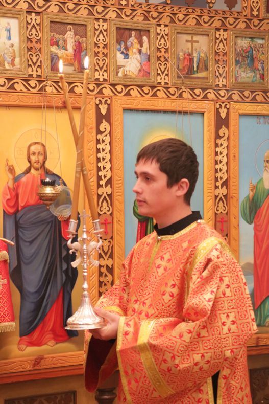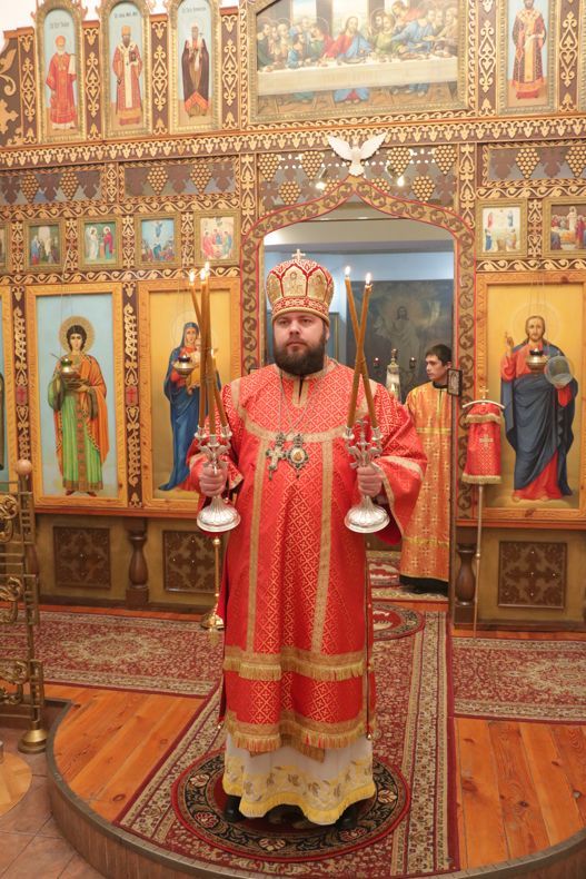 Его Преосвященству сослужили: настоятель Владимирского собора протоиерей Алексей Зайцев, ключарь Свято-Воскресенского кафедрального собора иерей Георгий Дворовой, клирик Владимирского собора иерей Никита Чебуков.