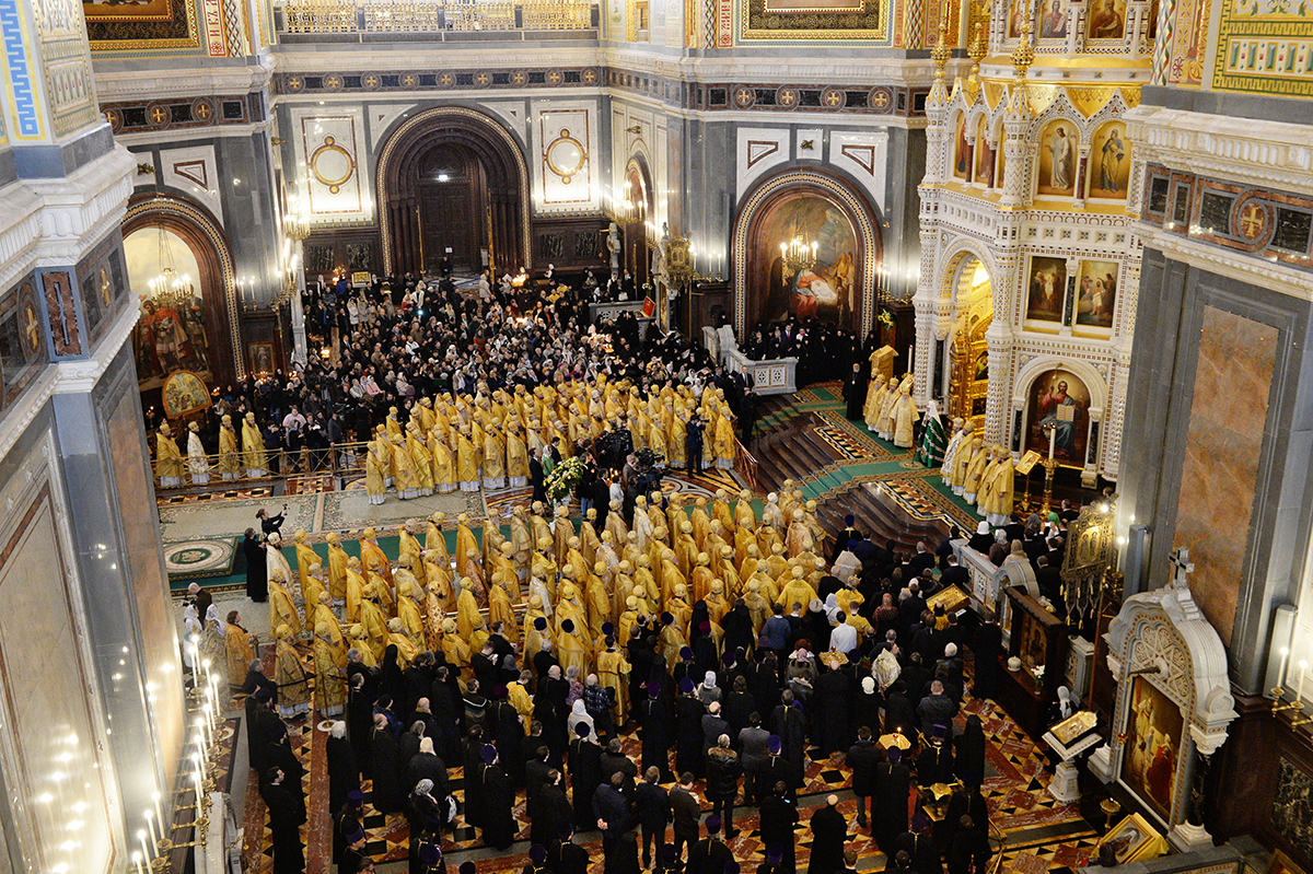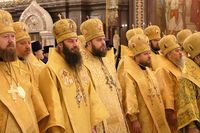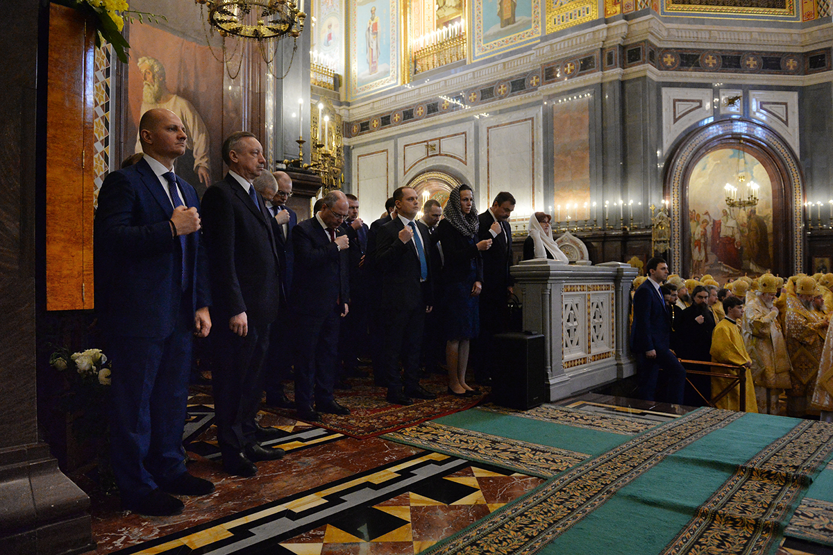 Предстоятелю Русской Православной Церкви сослужили: Блаженнейший митрополит Киевский и всея Украины Онуфрий; митрополит Крутицкий и Коломенский Ювеналий, Патриарший наместник Московской епархии; митрополит Кишиневский и всея Молдовы Владимир;митрополит Астанайский и Казахстанский Александр, глава Митрополичьего округа в Республике Казахстан; митрополит Ташкентский и Узбекистанский Викентий, глава Среднеазиатского митрополичьего округа; митрополит Санкт-Петербургский и Ладожский Варсонофий, управляющий делами Московской Патриархии; митрополит Минский и Заславский Павел, Патриарший экзарх всея Беларуси; митрополит Волоколамский Иларион, председатель Отдела внешних церковных связей Московского Патриархата; главы митрополий и иерархи Русской Православной Церкви; руководители синодальных и общецерковных учреждений в священном сане, представители Поместных Православных Церквей при Патриархе Московском и всея Руси и др.