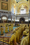 Затем предстоятель Русской Православной Церкви обратился к собравшимся с Первосвятительским словом и удостоил церковных наград архипастырей и пастырей, отмечающих знаменательные даты.