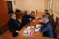 Встреча состоялась в Российском центре науки и культуры (Представительство Россотрудничества). Ее участниками стали: епископ Даниил, первый секретарь Посольства Российской Федерации в КР Мария Власова, руководитель Россотрудничества в КР Эдуард Крусткалн, войсковой атаман союза казаков Семиречья Александр Зуев, духовник казаков и руководитель епархиального отдела по связям с казачеством настоятель Владимирского собора протоиерей Алексей Зайцев.