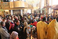 Придел, в котором мы совершаем богослужения, был освящен в честь митрополита Алексия. Сегодня мы благодарим великого святителя, за то, что в течение двух лет все службы мы проводили в этом приделе. Митрополит Алексий как под свое святительское крыло принял нас пока шли реставрационные работы, и мы сердечно благодарим его за то, что он отечески приютил нас».