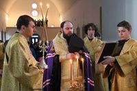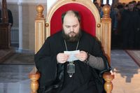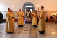 Его Преосвященству сослужили: митрофорный протоиерей Валентин Никонов, ключарь Свято-Воскресенского собора иерей Георгий Дворовой, благочинный Бишкекского округа протоиерей Андрей Кунавин, клирики иерей Сергий Чудайкин, иерей Вадим Паскин.