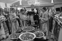 По заамвонной молитве Преосвященнейший Даниил возглавил молебное пение с чтением канона святому великомученику Феодору Тирону и освятил коливо.