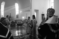 В своем слове Его Преосвященство отметил и такую важную вещь, что у сегодняшних прихожан, до установки иконостаса есть возможность видеть все богослужение, которое обычно проходит за Царскими вратами. «Такая возможность видеть всю службу была у первых христиан. Мы как единое целое со всею полнотой Церкви созерцаем тайнодействие, которое совершается в алтаре. Дорогие братия и сестры, пользуйтесь этим моментом, пока еще выполняются определенные работы для будущей установки иконостаса. Сейчас вы видите миссионерское действо. Ведь многие не знают, что происходит за иконостасом. Конечно, можно посмотреть видео, прочитать – но видеть и присутствовать – это совершенно другие вещи. Понимание и знание всего хода богослужения наполняет нас особой духовной благодатью».