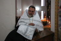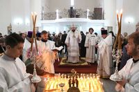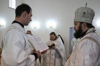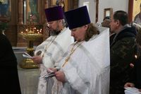 Его Преосвященству сослужили: секретарь Бишкекской епархии протоиерей Алексей Сыромятников, настоятель Владимирского собора протоиерей Алексей Зайцев, ключарь Свято-Воскресенского собора иерей Георгий Дворовой.