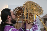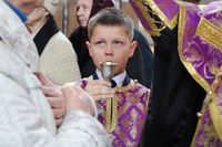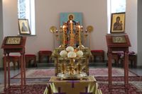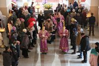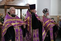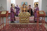 Его Преосвященству сослужили: митрофорный протоиерей Валентин Никонов, ключарь Свято-Воскресенского собора иерей Георгий Дворовой, благочинный Бишкекского округа протоиерей Андрей Кунавин, клирики собора иерей Сергий Чудайкин, иерей Вадим Паскин.
