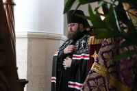Архипастырю сослужили: митрофорный протоиерей Валентин Никонов, ключарь Свято-Воскресенского собора иерей Георгий Дворовой, клирики собора иерей Сергий Чудайкин, иерей Вадим Паскин.
