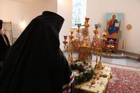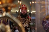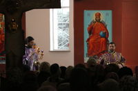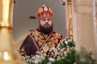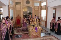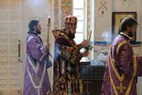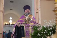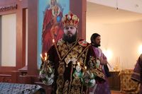 После великого славословия епископ Даниил совершил чин вынос Креста. Затем обратился к прихожанам со словом наставления.