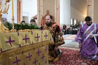 «Вынос Креста – это большое утешение для нас. Взирая на Крест мы видим Того, Кто явился причиной нашего спасения, орудием победы над адом. Осознать это трудно! Мы прикладываемся к распятию, но видим ли мы Христа на нем? Как же увидеть на Кресте Бога, распинаемого за наши грехи? Святые отцы говорят нам, что скорбями, болезнями, печалями мы можем приблизиться к Богу своей человеческой плотью, хотя бы немного понимая страдания Спасителя за весь род человеческий.