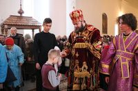 За богослужением владыка Даниил помазал прихожан освященным елеем.