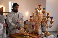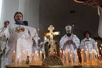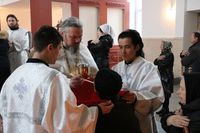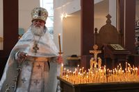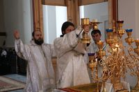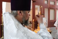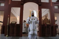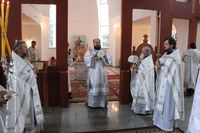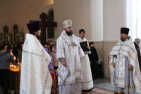 Его Преосвященству сослужили: митрофорный протоиерей Валентин Никонов, ключарь Свято-Воскресенского собора иерей Георгий Дворовой, благочинный Бишкекского округа протоиерей Андрей Кунавин.