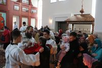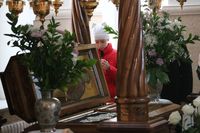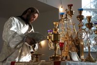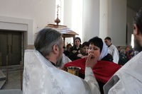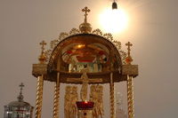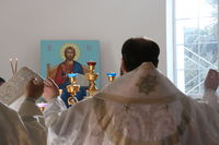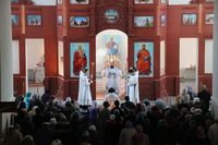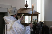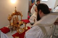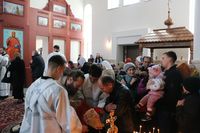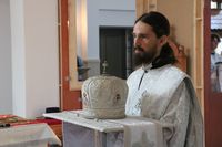 Перед Причастием владыка Даниил обратился к прихожанам храма с просьбой молиться молитвой по соглашению каждый вечер в 21.00, о завершении всех работ в главном приделе собора.