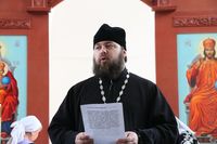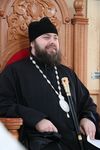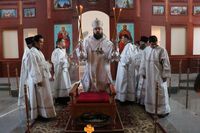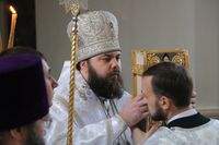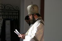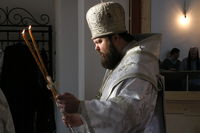 Его Преосвященству сослужили: митрофорный протоиерей Валентин Никонов, ключарь Свято-Воскресенского собора иерей Георгий Дворовой, клирик Сергий Чудайкин.
