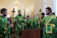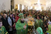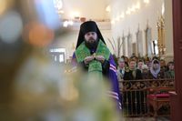 По завершении богослужения Его Преосвященство поздравил прихожан с праздником и обратился с проповедью.