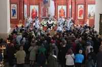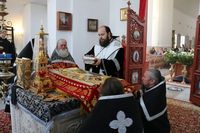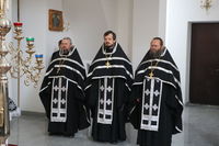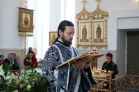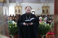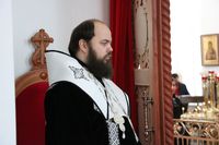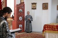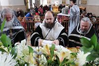 Его Преосвященству сослужили: митрофорный протоиерей Валентин Никонов, ключарь Свято-Воскресенского собора иерей Георгий Дворовой, благочинный Бишкекского округа протоиерей Андрей Кунавин, клирик собора иерей Сергий Чудайкин.