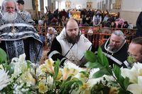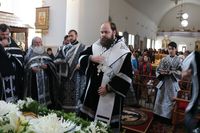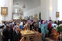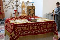 Во время богослужения, по чину, из алтаря была изнесена Плащаница, изображающая умершего Спасителя и положена на поклонение в центре храма.