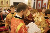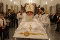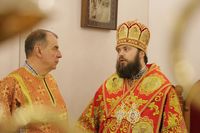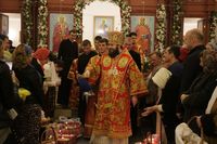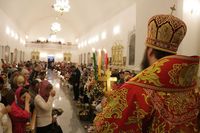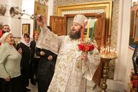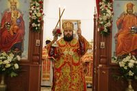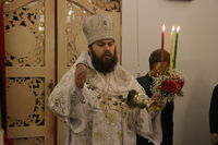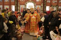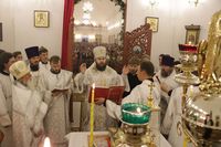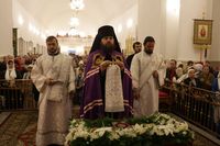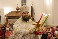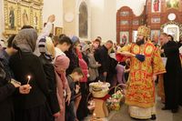 После заамвонной молитвы Глава Православной Церкви Кыргызстана освятил артос. По окончании богослужения Его Преосвященство поздравил прихожан и преподал всем архиерейское благословение.