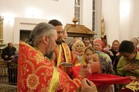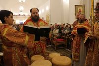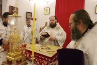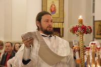 По окончании чтения Пасхального Евангелия, перед святым Причастием иерей Георгий Дворовой огласил Пасхальное послание Святейшего Патриарха Кирилла архипастырям, пастырям, монашествующим и всем верным чадам Русской Православной Церкви.