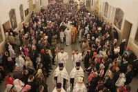 Пасхальное Евангелие (Ин. 1:1-17) читалось на 11 языках: церковно-славянском, русском, греческом, украинском, белорусском, кыргызском, казахском, латинском, английском, немецком языках, иврите.