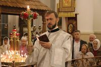 По традиции, за Пасхальной заутреней иерей Георгий Дворовой прочитал Слово огласительное святителя Иоанна Златоуста на Святую Пасху.