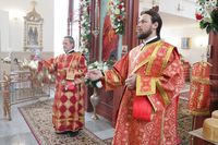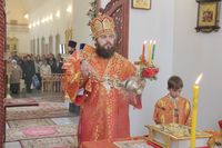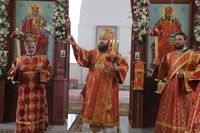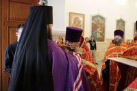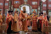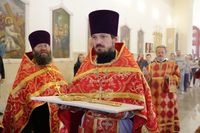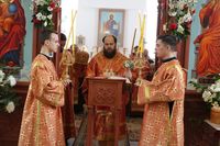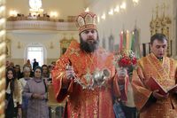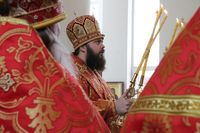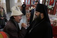 Его Преосвященству сослужили: митрофорный протоиерей Валентин Никонов, ключарь Свято-Воскресенского собора иерей Георгий Дворовой, благочинный Бишкекского округа протоиерей Андрей Кунавин, настоятель храма во имя святого праведного Иоанна Кронштадтского протоиерей Андрей Борисенко, клирики собора иерей Сергий Чудайкин, иерей Вадим Паскин.