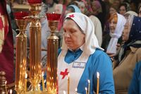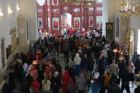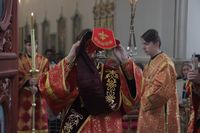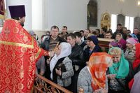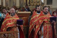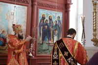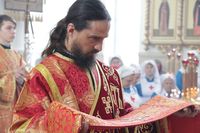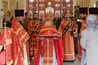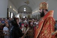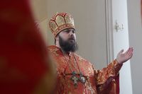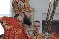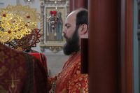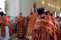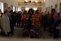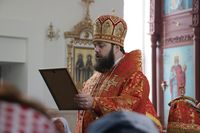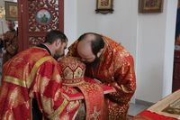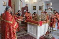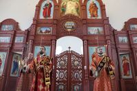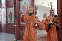 Его Преосвященству сослужили: митрофорный протоиерей Валентин Никонов, благочинный Иссык-Кульского округа настоятель храма Святой Троицы протоиерей Сергий Чувичкин, ключарь Свято-Воскресенского собора иерей Георгий Дворовой, благочинный Бишкекского округа протоиерей Андрей Кунавин.