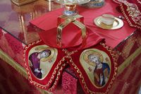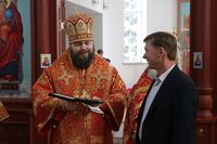 После Божественной литургии состоялось награждение патриаршими и архиерейскими наградами людей, принимавших участие в работах по реконструкции и реставрации Свято-Воскресенского кафедрального собора.