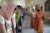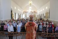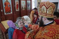 За богослужением владыка Даниил помазал прихожан освященным елеем. После отпуста Его Преосвященство обратился к прихожанам с архипастырским словом.