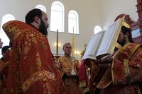 Его Преосвященству сослужили: митрофорный протоиерей Валентин Никонов, ключарь Свято-Воскресенского собора иерей Георгий Дворовой, благочинный Бишкекского округа протоиерей Андрей Кунавин, иеромонах Пафнутий (Денежкин), клирики собора иерей Сергий Чудайкин, иерей Олег Белотуркин, иерей Вадим Паскин.