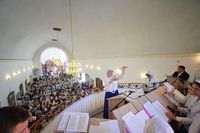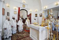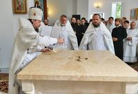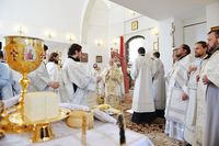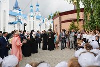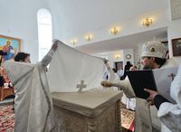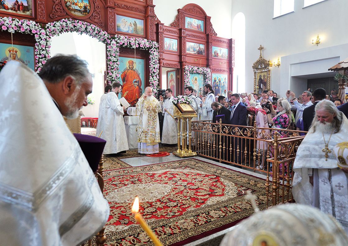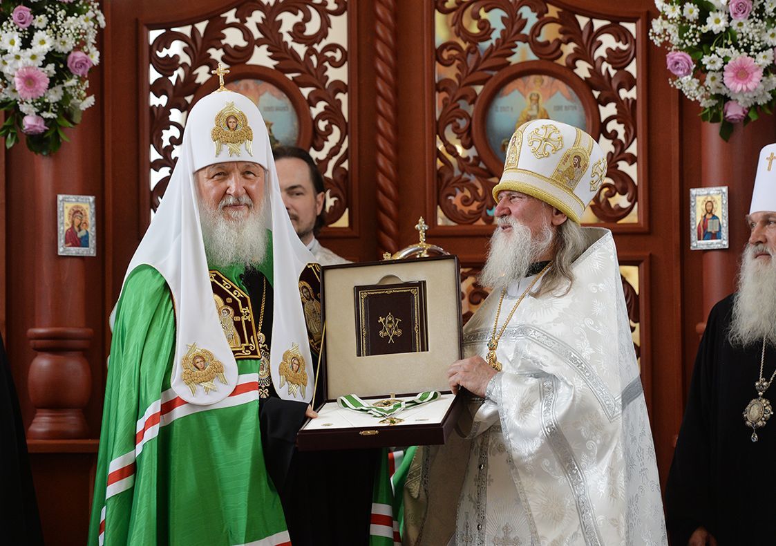 «Этот год ознаменован еще одним важным юбилеем ― семидесятилетием со дня основания Воскресенского кафедрального собора города Бишкека, который Вы ныне освятили. Совершенный чин великого освящения после двухлетней реконструкции главного православного храма нашей страны Вами, Ваше Святейшество, ― подлинное историческое событие в жизни современного Кыргызстана», ― подчеркнул правящий архиерей Бишкекской епархии. В дар Его Святейшеству епископ Даниил преподнес резную икону преподобноисповедника Ираклия Иссык-Кульского с частицей мощей святого.