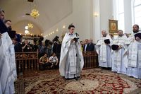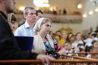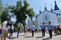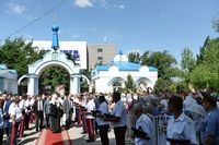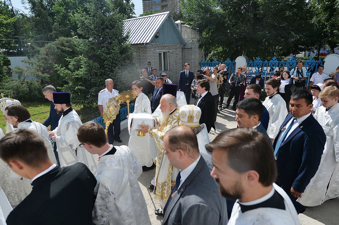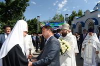 Перед началом богослужения у входа в собор Предстоятеля Русской Православной Церкви встречали епископ Бишкекский и Кыргызстанский Даниил, директор Государственной комиссии по делам религий Киргизской Республики З.Ж. Эргешов, Чрезвычайный и Полномочный посол Российской Федерации в Кыргызской Республике А.А. Крутько.