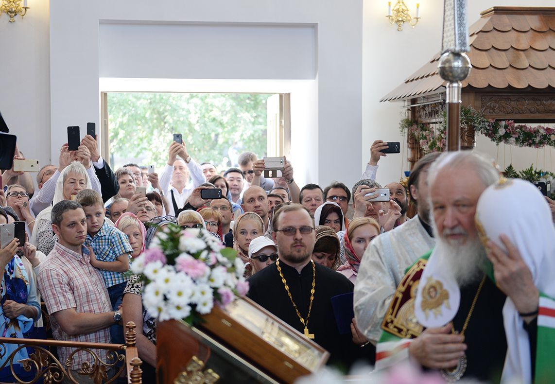 «Десятки тысяч людей уже поклонились этим мощам, ― сообщил Святейший Патриарх. ― Люди стоят часами в очереди в центре современного мегаполиса, одним этим только свидетельствуя о том, как крепко живет в сердцах наших людей вера православная. Пусть святитель Николай, пребывающий в этом храме своей иконой, помогает каждому из вас в вашей жизни, в ваших путешествиях, в решениях тех задач, которые перед вами стоят».