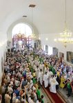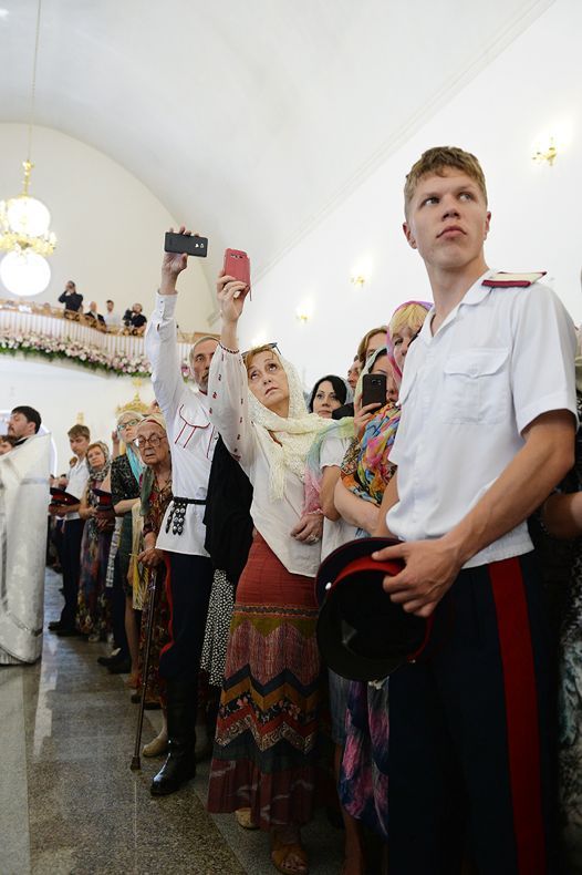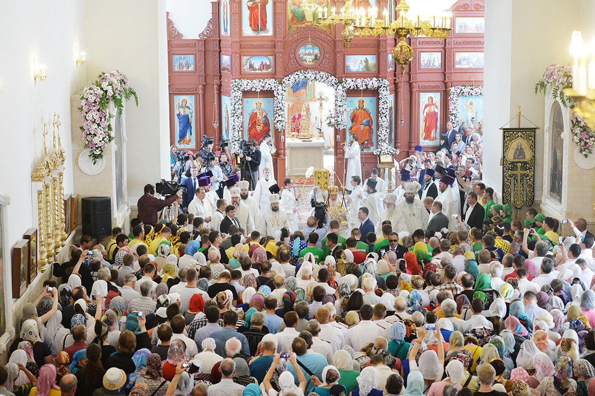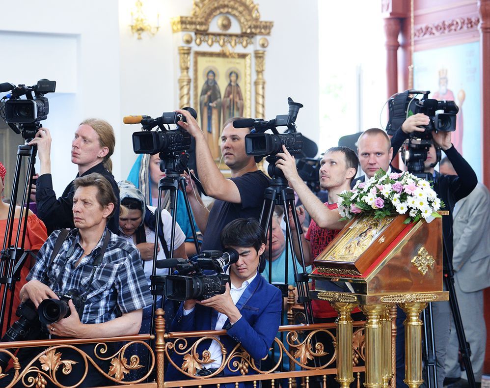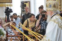 Чин освящения и Божественная литургия транслировались в прямом эфире на телеканале «Союз». Для удобства верующих у входа в собор были установлены большие экраны, на которых шла трансляция богослужения.