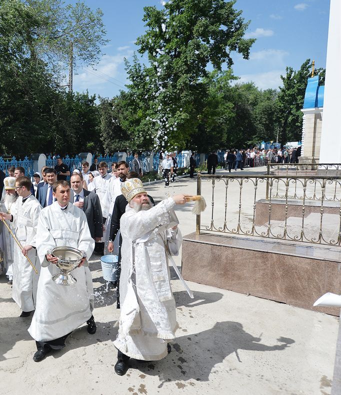 28 мая 2017 года, в Неделю 7-ю по Пасхе, святых отцов I Вселенского Собора, Святейший Патриарх Московский и всея Руси Кирилл совершил чин великого освящения Воскресенского кафедрального собора в Бишкеке и Божественную литургию в новоосвященном храме.