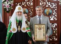 Во внимание к помощи в восстановлении Воскресенского кафедрального собора г. Бишкека медали святого благоверного князя Даниила Московского были вручены генеральному директору ООО Vertex gold company Д.Н. Ермошкину и президенту компании APL С.С. Куликову; Патриаршие грамоты ― директору ООО «НС Информ Консалтинг» А.Л. Гайдукову, Т.А. Филатовой и главному менеджеру по управлению персоналом ОАО «Кантский цементный завод» В.С. Капранову.