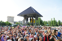 Верующим Предстоятель Русской Церкви передал иконки святого равноапостольного князя Владимира с Патриаршим благословением.